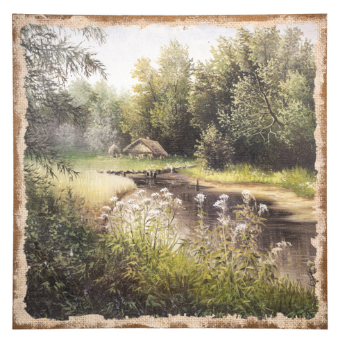 Cottage Landscape on Burlap Wall Decor